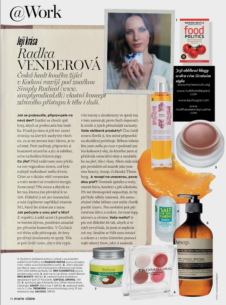 Jelikož žijeme v době, kdy mnoho z nás neví, jak nastartovat správnou životosprávu, zhubnout či být v celkové rovnováze, je dobré mít někoho, kdo nám s tím poradí. Někoho, jako je třeba Radka, která v New Yorku vystudovala známý Institute for Integrative Nutrition. Momentálně vede v Praze lekce Bikram Yogy (její lekci můžete navštívit ve studiu Bikram Yoga Prague) a pod značkou SimplyRadical (http://www.simplyradical.dk) nabízí klientům své služby právě jako koučka zdravého životního stylu nebo chcete-li health koučka.