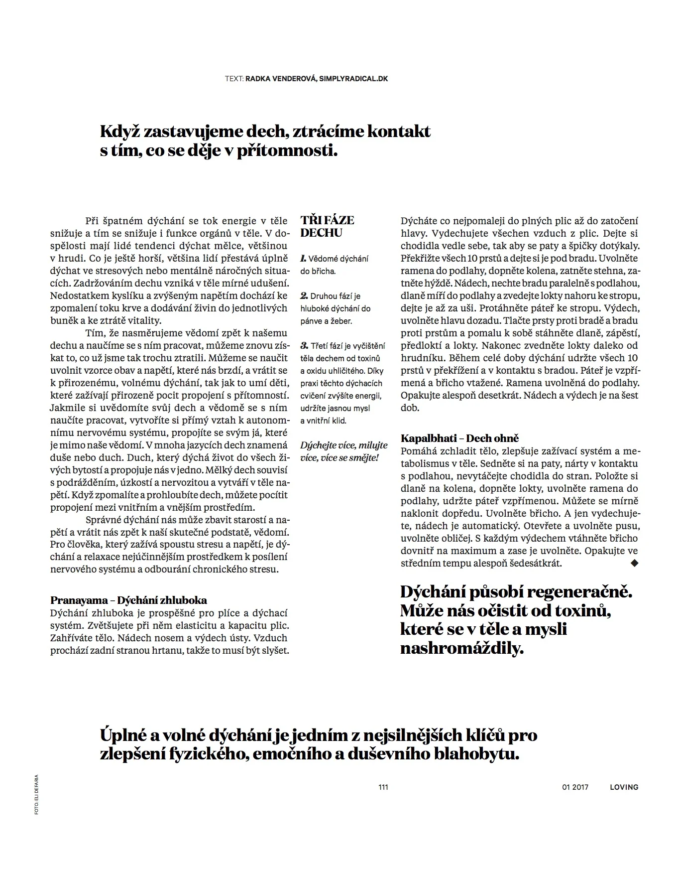 Můj dnešní článek tedy nebude o mém novém pokladu v šatní skříni, nýbrž o Radce Venderové. Radka mě zaujala na první pohled. Velmi milá a příjemná žena, ze které vyzařuje klid a rovnováha. Nedivila jsem se, když mi na konci našeho setkání podala vizitku s titulem „Holistic Health Coach“ a „Bikram Yoga Teacher“.